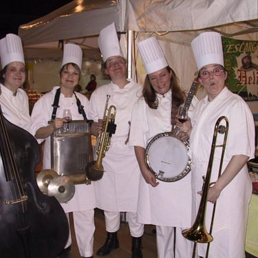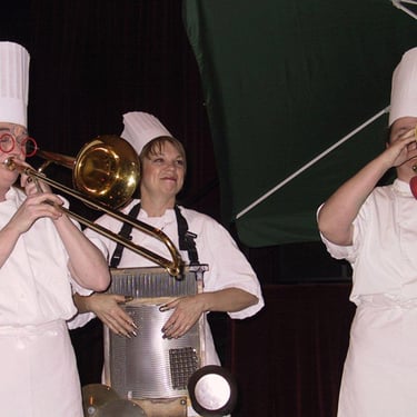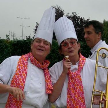 Pour une fête réussie (Galette des Rois, Fête de la Chandeleur, Chasse aux oeufs, banquets, cocktails, réceptions, animations marchés, inaugurations, salons du goût, séminaires gastronomiques, foires gourmandes,...) "Les Filles Toquées", orchestre de cinq musiciennes "relookée en cuisinières bien gratinées", distillent généreusement humour, talent, swing, interactivité avec le public... lors d'une promenade gourmande inoubliable de raffinement et d'exotisme.